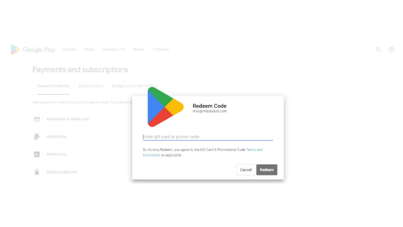 - Ödeme ve abonelikler > Kod kullan seçeneğine girin.