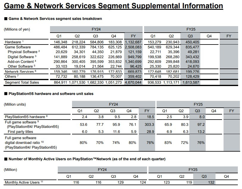 Öte yandan dijital satışların payı da büyümeye devam ediyor. Satılan oyunların %76’sı dijital olarak satın alındı ve bu oran geçen yıla göre %2 artmış durumda. PlayStation Network tarafında ise aylık aktif kullanıcı sayısı 132 milyona yükseldi. Bu artış, PS5’in sadece bir konsol değil, dev bir dijital platform hâline geldiğini bir kez daha gösteriyor.