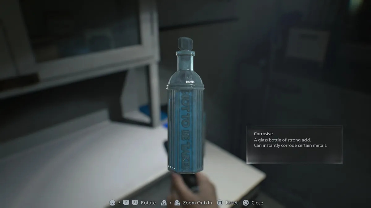 Üst katta yerdeki cesetten ID Wristband (Level 1) alın ve konferans odasına yönelin. İçeride üç normal zombi ve tehlikeli bir “singer” zombi bulunuyor. Onları pencere üzerinden atlayarak oyalayabilir, ardından arka odadaki asit şişesini alabilirsiniz.