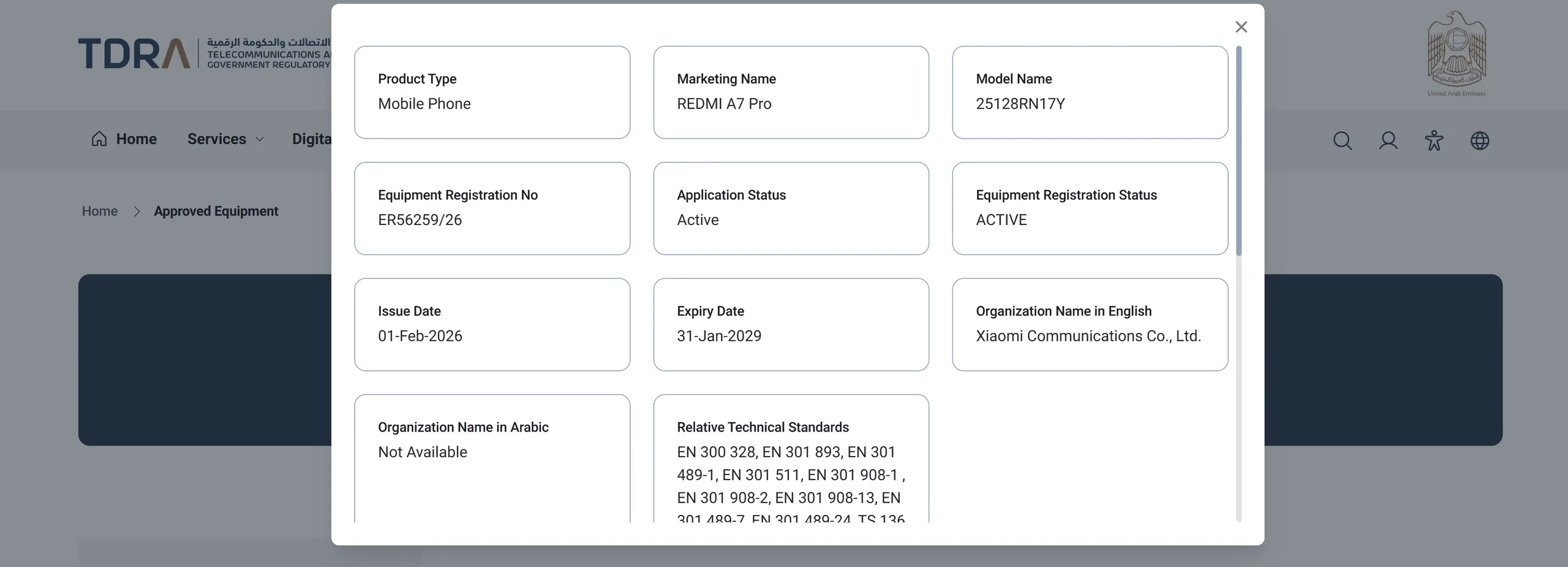 A7 Pro, Birleşik Arap Emirlikleri’nde faaliyet gösteren Telekomünikasyon ve Dijital Devlet Düzenleme Kurumu’nda görüldü. Sertifika kayıtlarında cihazın ticari adıyla birlikte model numarası da yer aldı. Bu tür belgeler donanım detaylarını açıklamasa da, ürünün lansman sürecine girdiğini gösteren güçlü işaretler arasında kabul ediliyor.